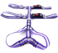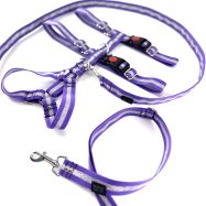 Komplet: szelki, smycz, zaczep fioletowe ozdobne